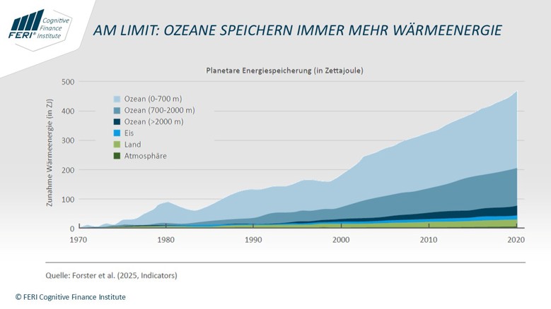 Ohne die Weltmeere als gewaltiger Zwischenspeicher wäre der Klimawandel heute bereits wesentlich stärker spürbar. Doch dieser „bequeme“ Zustand geht zu Ende: Die Ozeane sind zunehmend gesättigt mit CO₂, und ihre Fähigkeit zur weiteren Aufnahme von Wärme nimmt ab. Damit wird das wahre Ausmaß des Treibhauseffekts auch an der Oberfläche wesentlich stärker spürbar.