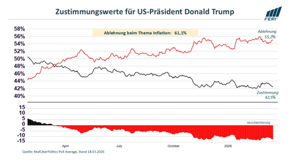 Trump should know: Wars almost always end up costing more than expected, and they are always fought on the home front as well. His own voters are unlikely to be pleased that gasoline prices in the U.S. have recently risen significantly. Against the backdrop of high living costs and the approaching midterm elections, this is not a good starting point for the Trump administration (see Chart 3: Approval ratings for U.S. President Donald Trump).