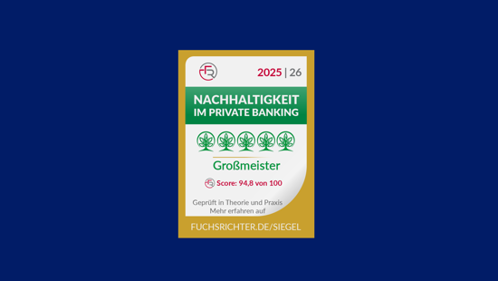 In the 2025 sustainability rating by FUCHS / RICHTER, FERI was the best German provider, scoring 94,8 out of a possible 100 points, and was awarded “Grandmaster” status. The rating particularly recognized our social engagement and our independent product and sustainability analysis.