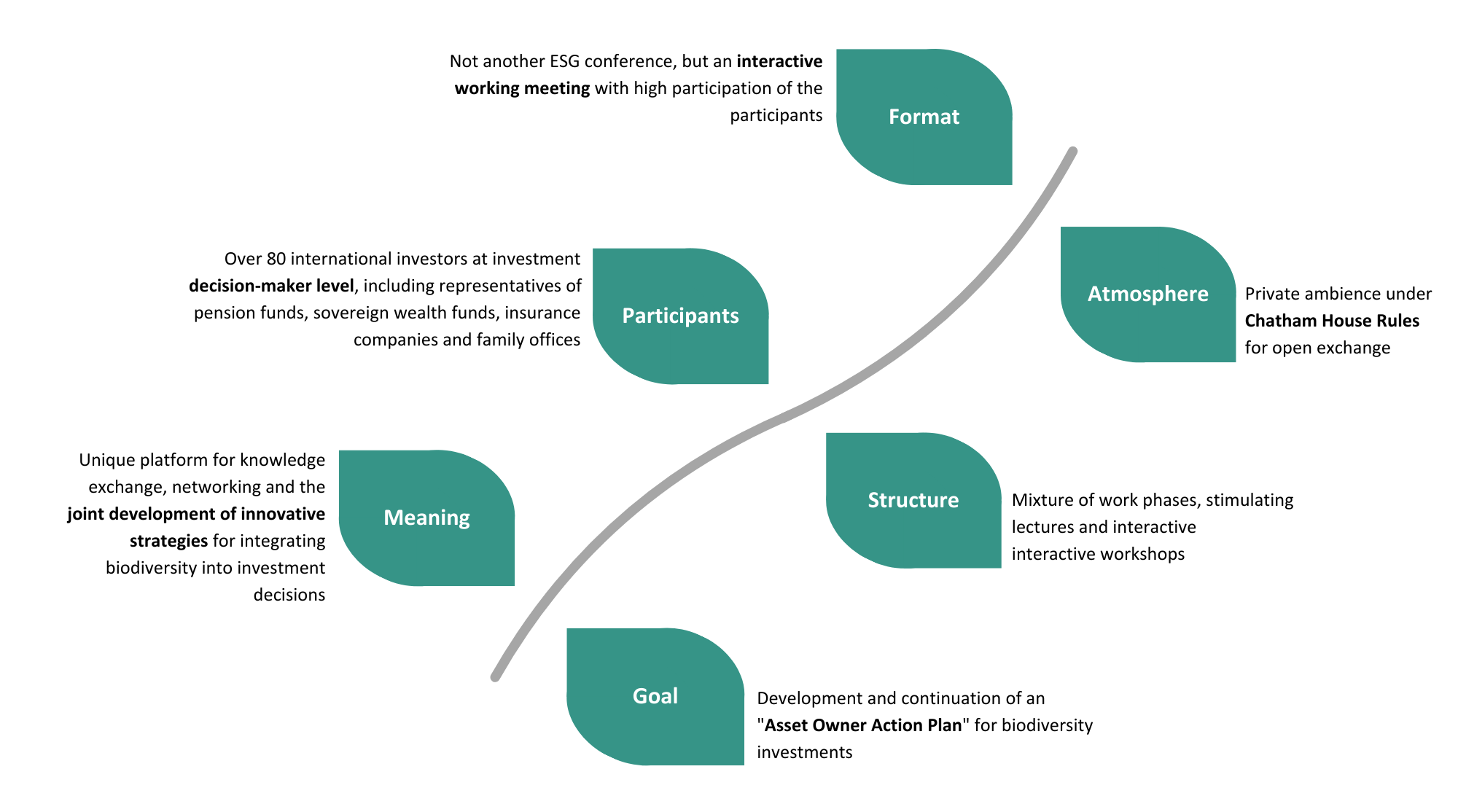 Participants can once again look forward to 2.5 days of inspiring presentations, lively discussions, and interactive workshops. A special focus will be on presenting concrete investment projects and their measurable impacts on biodiversity.
